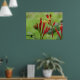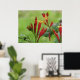 Poster muestra una fotografía de flores nativas indias rosadas (Spigelia marilandica) con un pequeño insecto en una.