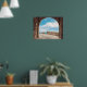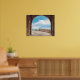 Se muestra al poster con una foto impresa de una hermosa escena de un arco de piedra con aves marinas. Personalizar este artículo o compra tal cual. Imagen de stock