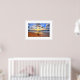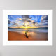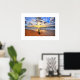 Poster mostrado con un borde blanco y una foto impresa de una bella escena de la puesta de sol en la playa. Personalizar este artículo o compra tal cual. Imagen de stock