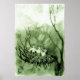 poster en tonos verdes con imagen del dibujo original titulado "Tiempo de alimentación"