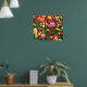 Poster mostrado con una foto impresa de un campo de tulipanes coloridos bonitos. Personalizar este artículo o compra tal cual. Imagen de stock