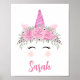 Poster Personalizado De Unicornio Con Nombre Rosa Que Puede Personalizar Añadiendo Su Nombre!