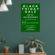 Venta de Viernes Negro. Atraer más clientes. Convence a más clientes para que compren sus productos o les gusten sus servicios. Ofrecer promoción. Oferta de venta. Oferta de descuento. poster de personalizable que puede utilizar como material de marketing para atraer a más clientes. Personalizar y úsalo para promocionar su marca. Los contenidos son los textos de la venta del Viernes Negro, el porcentaje de descuento que ofrecerás, el logotipo de tu empresa, el nombre de la empresa o del negocio, la dirección, el número de teléfono, el correo electrónico y el sitio web o la página de medios sociales. Los diseños posters son textos de color verde claro y blanco sobre fondo verde y sobre forma rectangular de retrato. Compruebe la apariencia después de cargar el logotipo y escribir textos. Si la apariencia le resulta agradable, puede realizar su pedido ahora. Si necesita cambiar el tamaño y mover el logotipo y los textos para que encajen en este poster o en otros tamaños y estilos que elija, por favor cambie la herramienta de diseño. También puede realizar otros cambios de acuerdo con sus preferencias en la herramienta de diseño, como cambiar el color de fondo del poster, el color del tipo de letra y el estilo del tipo de letra. ¡Te deseo más ventas!