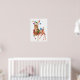 Extraordinaria carta vintage del famoso reno de Santa, Rudolph. Lleva una corona alrededor de su cuello con campanas y una cinta roja. Sus cuernos están decorados con coloridos adornos de bola de Navidades. A la espalda de Rudolph hay un pájaro azul muy lindo y dulce cantando alegremente una poster de melodía.