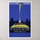 Poster de WPA que muestra la fuente de Buckingham y el horizonte de Chicago.