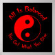 Todo está equilibrado - Obtienes lo que das - poster negro con letras rojas y símbolo yin yang.