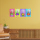 Una vela de cumpleaños arde en cada uno de los cuatro adorables quequitos de arte pop cubiertos con jugos arcoiris. Es una celebración de deliciosos pasteles de pop art para poner la helada en tu día especial. ¡Diviértase decorando estos magros pastelitos y Personalizar su compra con una cita personal, foto o nombre!