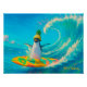 This artwork features PP the Penguin — a playful character wearing his signature pineapple beanie — riding a colorful surfboard