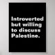 Este es un especial "Presentado pero dispuesto a discutir sobre Palestina" que dice diseño Para los palestinos, amantes palestinos pro-palestinos, o para todos los que apoyan la libertad y la justicia y luchan contra la injusticia. A todos los partidarios de la justa causa palestina. Aumentar y apoyar la liberación de Palestina y Gaza y el establecimiento de la paz en Jerusalén. Diseñado por diseñadores de Peace Lover. Detengan el conflicto palestino-israelí. Las vidas palestinas importan. (¡PUEDES CAMBIAR Y PERSONALIZAR ESTE DISEÑO DE TEXTO!).