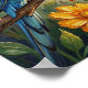 Cute poster wall art for bird lovers with impasto painting style blue and green parakeets and flowers.