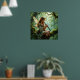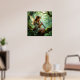 A mystical ethereal poster featuring an elven fairy in vintage dress playing a clarinet sitting on a tree branch.