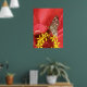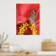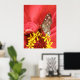 This beautiful print features a detailed photograph of a pretty brown and white speckled moth sitting on a red Zinnia flower. The photograph was taken using macro photography resulting in a detailed image of the beautiful insect and the bright colourful flower it is sitting on.