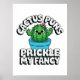 Cute cactus character with a playful pun “Prickle My Fancy”.