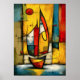A bold abstract expressionist sailboat reduced to color, rhythm, and emotion. Geometric forms and textured brushwork evoke movement, balance, and inner journey, transforming a timeless maritime symbol into powerful contemporary wall art for modern interiors.