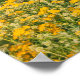 Un campo vibrante de flores silvestres amarillas se extiende hacia el horizonte, creando un impresionante contraste contra el océano azul y el cielo nublado en la península de Monterey, California. Las flores están en plena floración, sus pétalos amarillos brillantes crean un mar de color. La costa es visible en segundo plano, con rocas y olas suaves del océano.