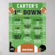 Este primer poster de cumpleaños se coordina perfectamente con nuestras invitaciones y estacionarios sobre el tema del fútbol "First Year Down". Cuenta con un fondo de campo de fútbol de rayas verdes con fútbol, casco y acentos #1 en negro. Personalizar con todos sus pequeños hitos y estadísticas.