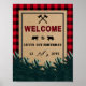 Celebra tu primer cumpleaños con este personalizado Lumberjack First Birthday, Wild One Welcome Sign. Con un fondo de papel rojo y negro de búfalo y kraft con siluetas de oso, hacha y montaña.