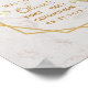Este elegante diseño floral de primera comunión recomendado para niña tiene un marco dorado geométrico irregular con ramos de flores de calas blancas y helechos hacia arriba y hacia abajo sobre dos hexágonos dorados que se superponen, con una cruz dorada en su parte superior. El fondo es de mármol blanco. El nombre del niño está escrito en una elegante letra caligráfica; el resto está escrito en mayúsculas más pequeñas. Todo el texto tiene un color amarillo dorado, como el marco dorado.