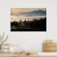 La niebla se sienta sobre las colinas en Pieniny, Polonia. Sin embargo, los rayos del sol comienzan y empieza un nuevo día.