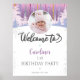 Bienvenido a sus invitados a una mágica celebración de invierno con nuestro encantador cartel. Con una escena de invierno tranquila, con copos de nieve que caen suavemente y un paisaje forestal sereno, este letrero marca el tono perfecto para su día especial. Ideal para una fiesta de cumpleaños con temática invernal, añade un toque de encanto de temporada e invita a todos a disfrutar de la helada diversión. Perfecto para dar una primera impresión cálida y acogedora mientras sus huéspedes se adentran en su maravillosa celebración invernal.