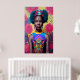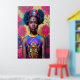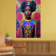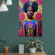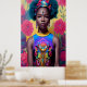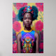 Imagen de una princesa africana con el pelo azul y la bufanda. Esta es una imagen creada por IA con diseño de temática floral.