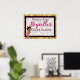 Por favor firme en nuestro libro de visitas en rosa y negro con fondo de flores de carnífora blancas y borde de purpurina dorada. Con una adorable princesa afroamericana con un adorable tutú rosa oscuro y corona dorada sobre un fondo floral de flores de carnífora blancas y purpurina dorada. Rosa y dorado lujoso rodeado por un grueso borde negro y rosa intenso. Personalizado con el nombre del bebé. Perfecto para una fiesta de cumpleaños o baby shower temática de princesa rosa.