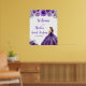 Este dulce cartel de bienvenida de dieciséis años cuenta con una bella princesa en un vestido de bola morada oscura con arreglos florales. Es perfecto para una dulce fiesta de 16 años.