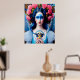 Una imagen de una princesa con vestido de plumas azules. Esta es una obra de arte generada por IA con un tema floral.