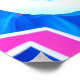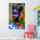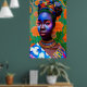 Una imagen de una cara rosa y azul maquillada con cabello verde. Esta es una obra de arte generada por IA con un tema floral.