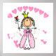 Un adorable diseño de princesa con figuras adorables de palos con una figura de palos en un vestido de bolas rosa usando una tiara dorada, sosteniendo una varita con forma de corazón rojo, rodeada por muchos corazones rosados que dicen "¡Princesa!".