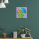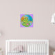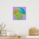 El príncipe de rana verde con corona y varita, es tan feliz como puede estar sentado en su lipad rodeado de libélulas. Diseñado en colores vivos para niños o bebés.