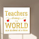 Escritura de oro de tipografía profesores inspiradores citan con manzanas rojas: "Los profesores cambian el mundo de un niño a la vez". Tenga en cuenta que el color de fondo es modificable. Puede cambiarlo después de seleccionar la opción "personalizar".