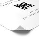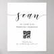 Letrero de mesa con código QR de programa de boda diseñado a medida con diseño minimalista moderno en blanco y negro.