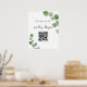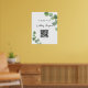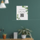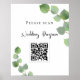 Un fondo blanco moda. Decorada con eucaliptos de color agua de color verde, brotes. Personalice y agregue su propio código QR a su sitio web con el programa de boda.