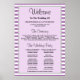 Póster Programa de bodas enmarcadas de rayas moradas/blan