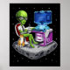 Este divertido diseño de ingeniero informático presenta un programador alienígena espacial escribiendo código de software.