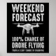 Pronóstico de fin de semana - 100% de posibilidades de volar con drones (con una ligera probabilidad de colapso). Este divertido piloto de drones y accesorio de hobbyist es un regalo perfecto para todo aquel que ame volar drones, cuádruples o un UAV. ¡Un gran regalo para un piloto y operador comercial de drones! Si te gusta volar y operar drones como hobby, amar las carreras de drones o disfrutar de tomar video con tu dron o cuadcopter, ¡entonces este diseño es para ti!
