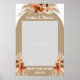 Cartel de foto de boda con arco de terracota boho y pampas,