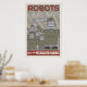 Retroceder en el tiempo al pasado futurista de una historia alternativa con este poster retro de reclutamiento militar... para los robots. ¡ROBOTS La Máquina De Guerra Te Necesita! Únete a los MARINOS MECANIZADOS Si estuviera hecho de metalizado, respondería totalmente a esta llamada de reclutamiento y me inscribiría, ¿verdad? Me amontonaba con mi uniforme de acero blindado, con mi gorra de garrison, ponía mi insignia de perno hexagonal y me reportaba para trabajar. Es eso o pasar los días trabajando en las fábricas. También podría poner los brazos de pistolas, las manos con llave, los ojos de accionamiento telescópico y los oídos de la antena para un mejor uso — ¡despachar al frente y ayudar a los humanos a destruir al enemigo! O... esperen un minuto... tal vez los humanos SON el enemigo y esto es como un poster de reclutamiento post-apocalíptico de Skynet para endoesqueletos terminadores. Oh, oh. ¡Corran por sus vidas!