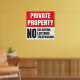 Signo de advertencia de propiedad privada. Sin Solicitar. Sin Apagones. Sin Traspaso.