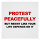 ¡Protesta pacífica pero resiste como tu vida depende de eso! Signo de protesta o poster.