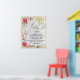 Una mujer de valor, Eishet Chayil en hebreo, aparece en un texto de caligrafía adornado con una acuarela pintada de rosa y rosas rojas y vegetación. Esta impresión de tela se ve hermosa en un marco ornamentado y es el regalo perfecto para una dama especial, esposa, madre, novia o mitzvah murciélago.