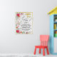 Una mujer de valor, Eishet Chayil en hebreo, aparece en un texto de caligrafía adornado con una acuarela pintada de rosa y rosas rojas y vegetación. Esta impresión de tela se ve hermosa en un marco ornamentado y es el regalo perfecto para una dama especial, esposa, madre, novia o mitzvah murciélago.