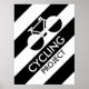Diseño gráfico moderno en blanco y negro con tema de bicicleta. Rayas diagonales y una bicicleta. Una creación original y exclusiva de MixedWorld