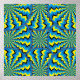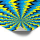 Ruedas con patrones psicodélicos rotan en direcciones opuestas en una imagen poster abstracta de la variedad ilusoria de movimiento.