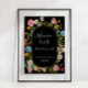 Señala a tus invitados dónde pueden refrescarse: ¡a tu Bar de Mimosa! Las flores silvestres coloridas en acuarela sobre fondo negro crean un diseño Boho impresionante. Las flores silvestres botánicas, el follaje verde y las abejas se combinan con una fuente de caligrafía manuscrita. Esta obra de arte fue pintada y diseñada gráficamente por la artista y diseñadora licenciada internacionalmente, Audrey Jeanne Roberts, derechos de autor.