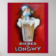 Anuncio de época, Bieres de Longwy, cerveza de espuma, vidrio y chica Este poster se muestra a un tamaño óptimo. Hay disponibles tamaños más pequeños. Si necesita una talla mayor, por favor contáctenos a través de Zazzle.