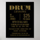 Elegante Poster De Publicidad De Lecciones De Tambor Por La Tienda De Tarjetas De Negocios.