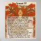 Poster con Sonnet 18 de William Shakespeare, también conocido por su primera línea: "¿Te comparo con un día de verano?" Este poema es uno de los más famosos de Shakepeare. El poema de tono romántico es parte de la "secuencia Juvenil Justa". El poeta decide que su amado no puede compararse con un fugaz pues vivirán para siempre en el poema: "Mientras los hombres puedan respirar, o los ojos puedan ver, por tanto tiempo vive esto, y esto te da vida".