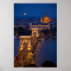 Europa, Hungría, Budapest. El puente de la cadena se encendió por la noche. Crédito: Jaynes Gallery / DanitaDelimont.com